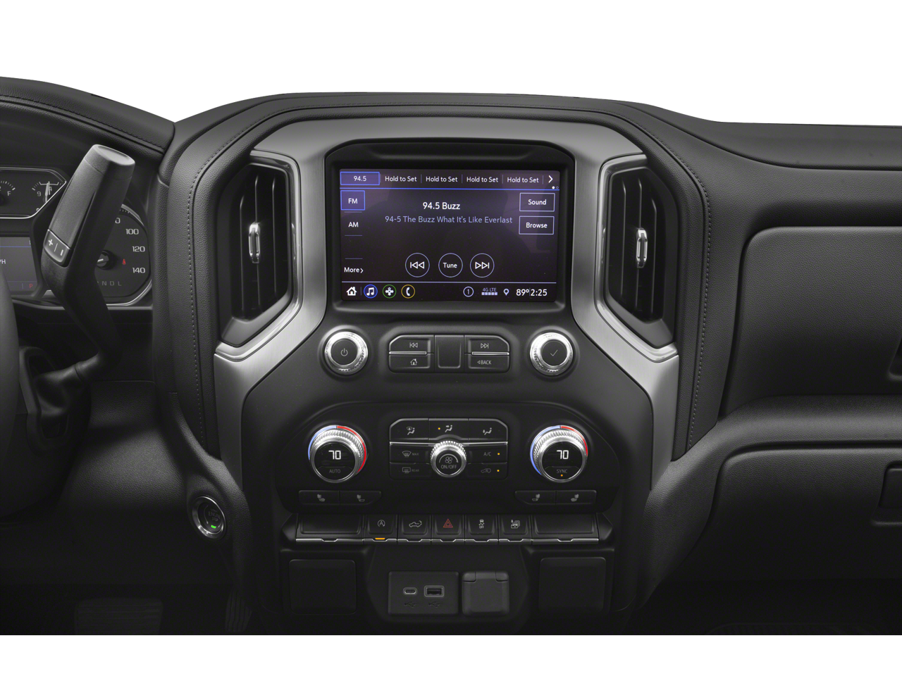 - AUDIO SYSTEM GMC INFOTAINMENT SYSTEM WITH 8" DIAGONAL COLOR TOUCH-SCREEN AM/FM STEREO with seek-and-scan and digital clock includes Bluetooth® streaming audio for music and select phones; featuring wired Android Auto and Apple CarPlay capability for compatible phones (STD)